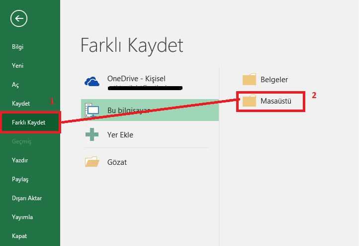 Sol paneldeki Farklı Kaydet tuşuna tıklayınız