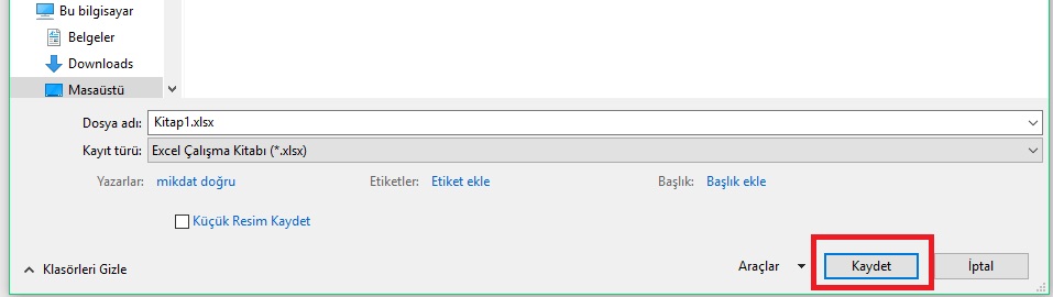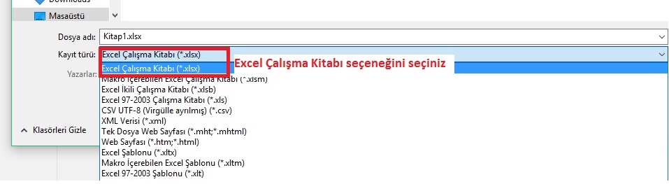 Açılır listeden Excel Çalışma Kitabını seçiniz